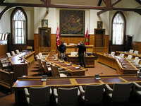 and Middlesex courtroom stands empty, awaiting the legal and media